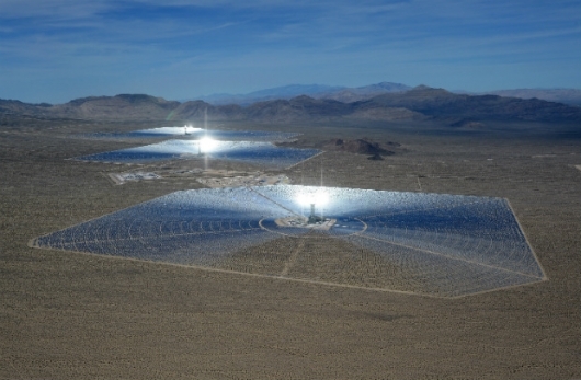 No centro de uma enorme tenda de plástico (340 hectares, equivalente à área do Central Park, em Nova York), ergue-se uma altíssima chaminé (cerca de um quilômetro de altura).
